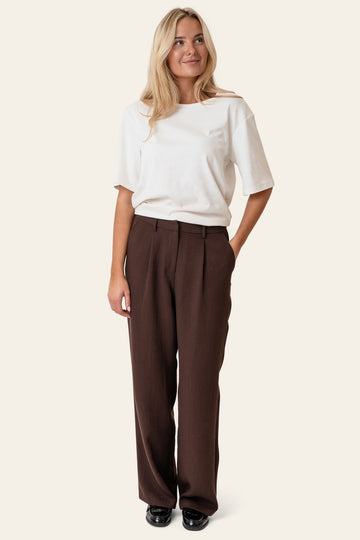 Vores sortiment rummer både moderne og tidløse modeller. De neutrale farver som grå, beige og brun giver et professionelt og velplejet udtryk, mens klassiske mørke nuancer som sort er perfekte til aftenens begivenheder. Uanset farvevalg er bukserne designet i et minimalistisk og stilrent look, der gør dem nemme at style til enhver lejlighed.