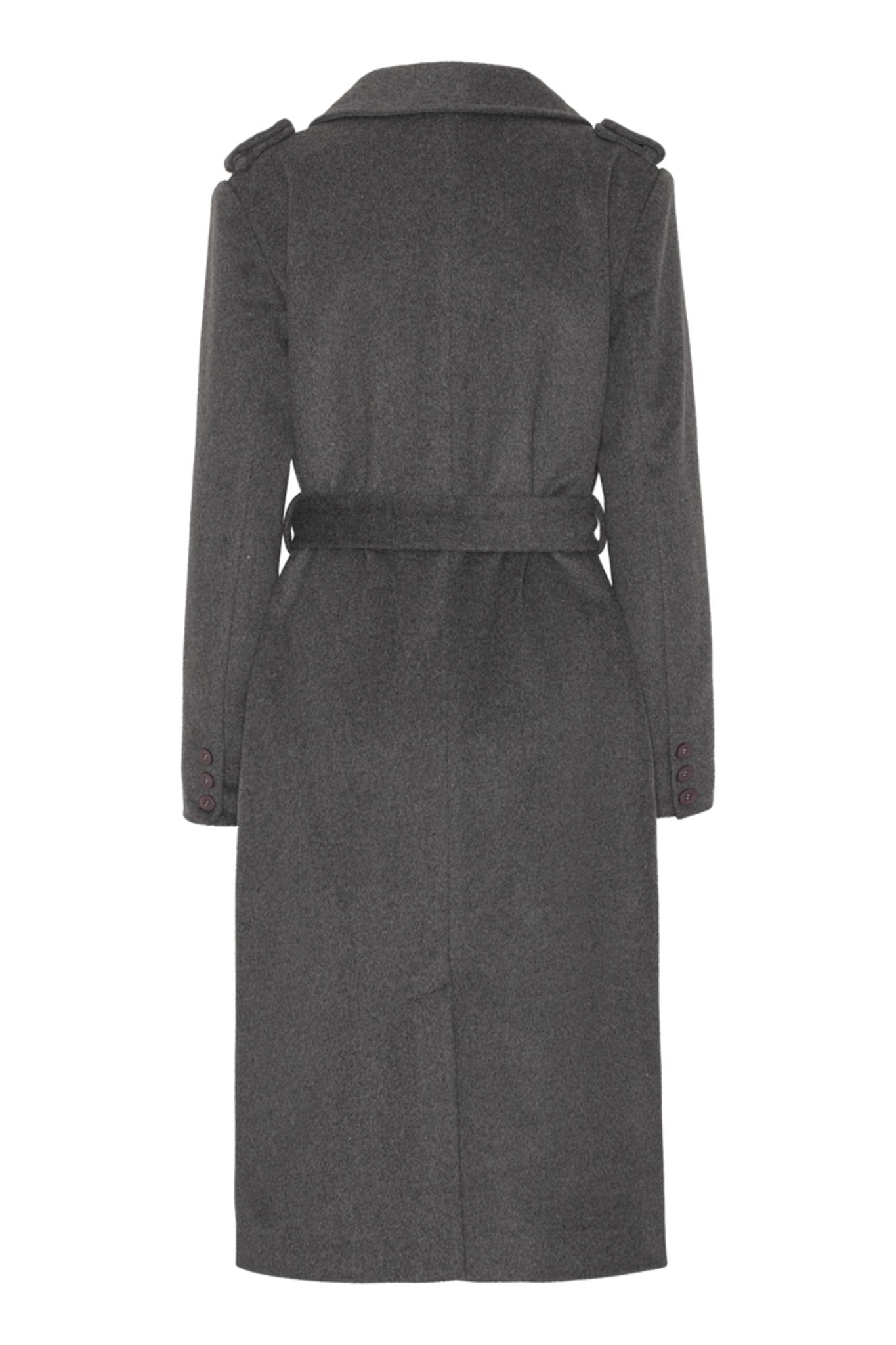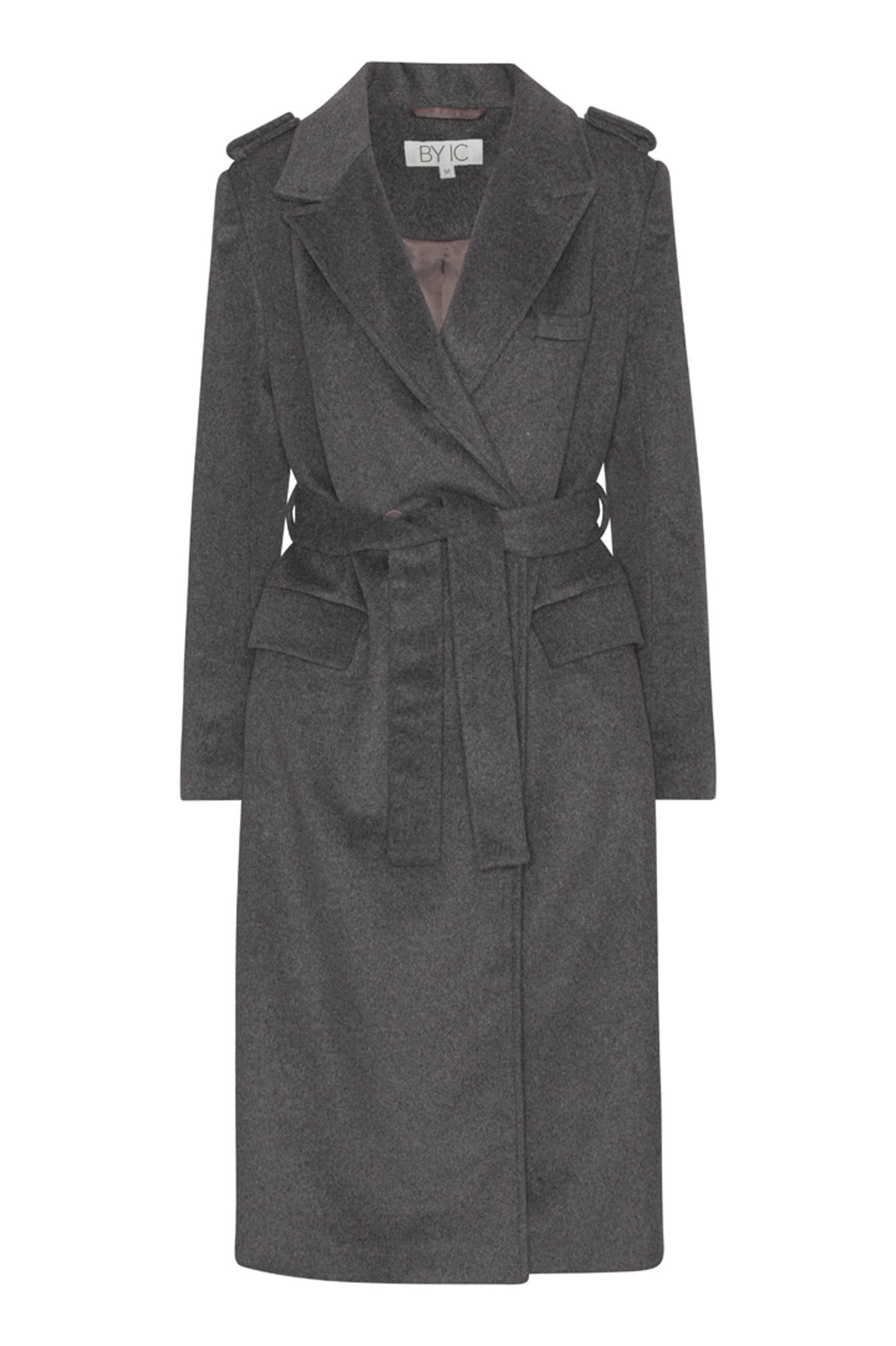 Behagelig lang uld jakke med knapper og bindebånd, perfekt til efterår.