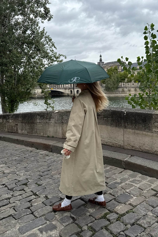 Elegant beige trenchcoat med lang og løs pasform i kroppen og i ærmerne. Trenchcoaten har en krave, der også kan foldes op med en knap foran, hvilket giver jakken en stil med høj hals. Den har 2 lommer og store naturfarvede knapper ned foran til lukning og stropdetaljer på ærmerne, også lukket med en stor naturfarvet knap. Trenchcoaten har plisseringsdetaljer på ryggen, der tilføjer et elegant look til jakken.