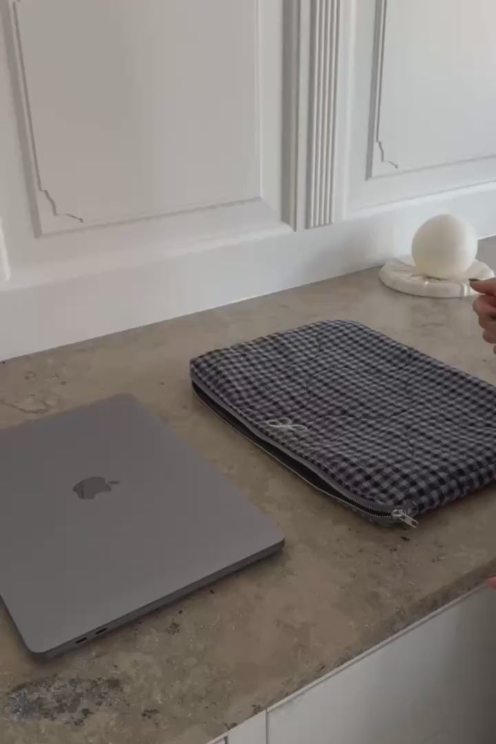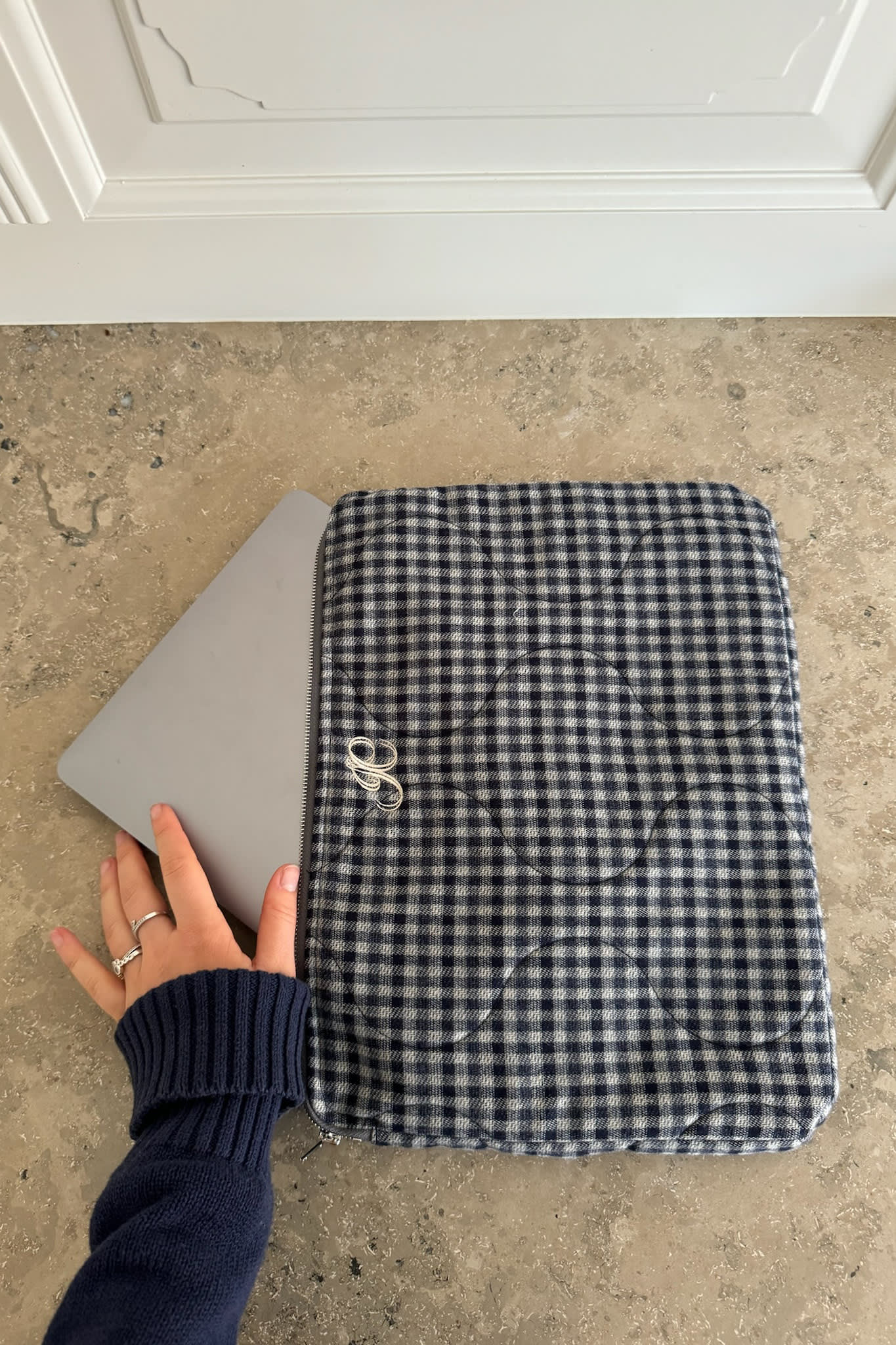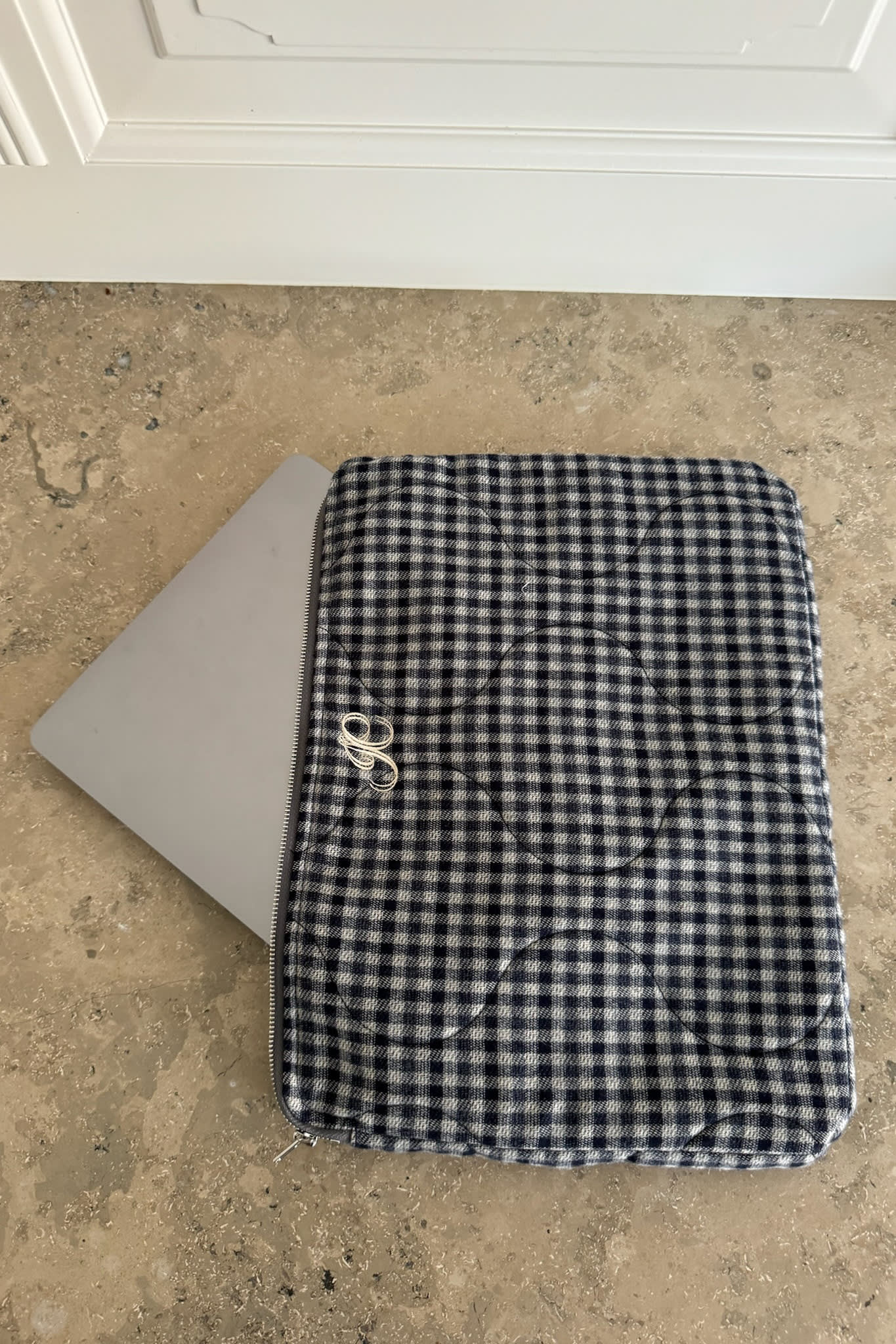 Blødt computer-sleeve med tern og med lynlås som lukning.