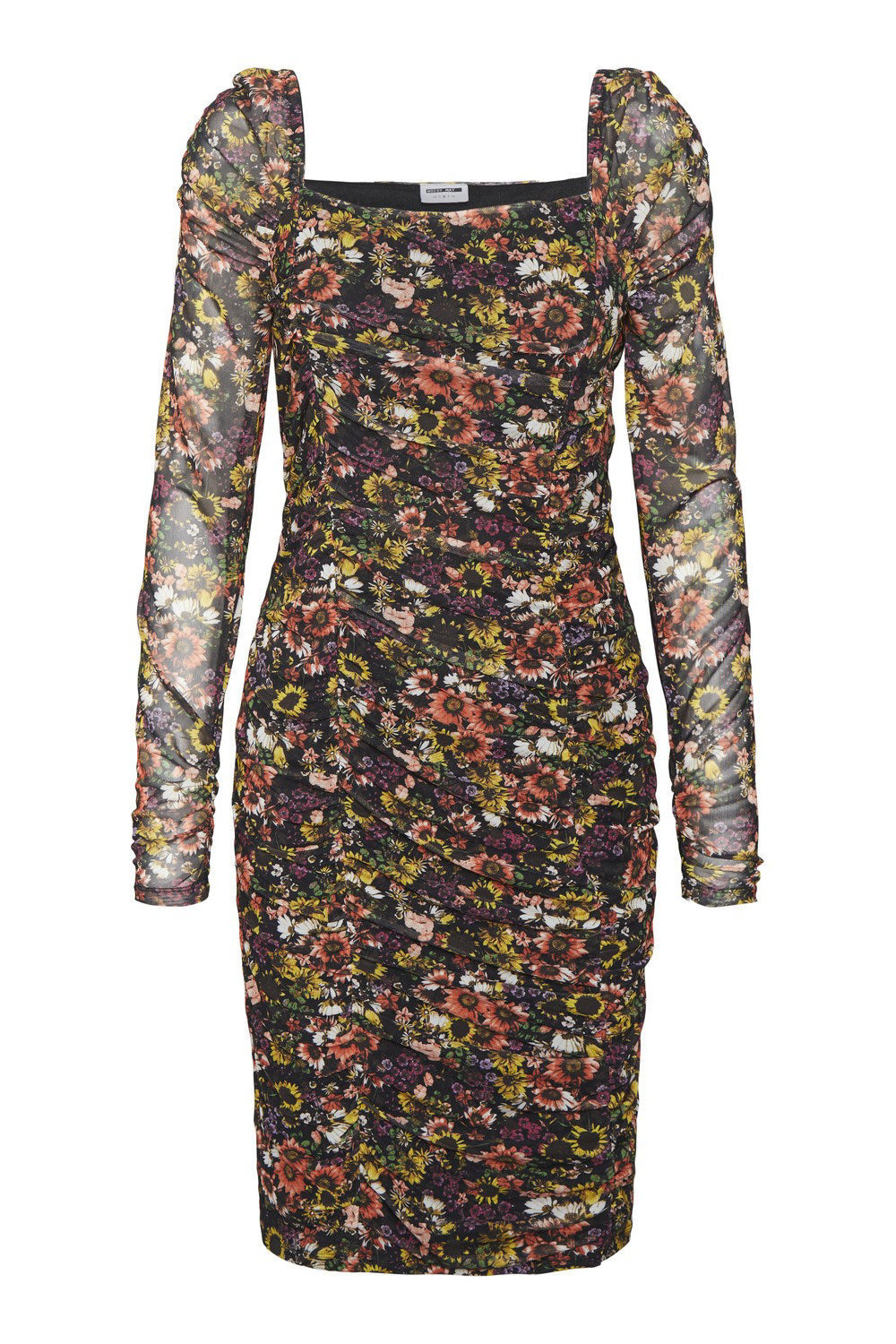 NMJudith LS Mesh Ruching Dress - Black Sunflower