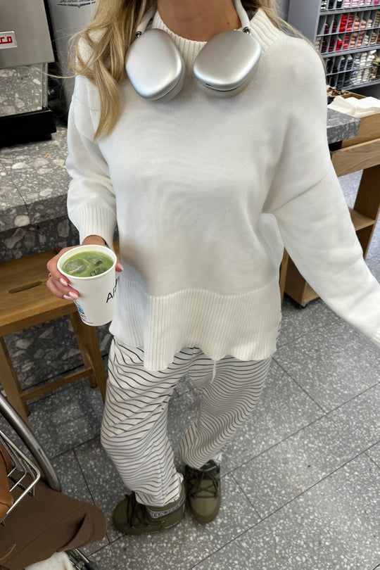 Strikket trøje med høj hals og slids i siderne.