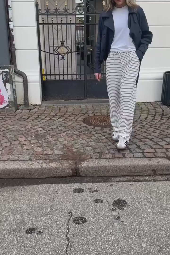Samme pasform som vores Sofia bukser, men har smallere striber og en mere glat overflade i materialet.