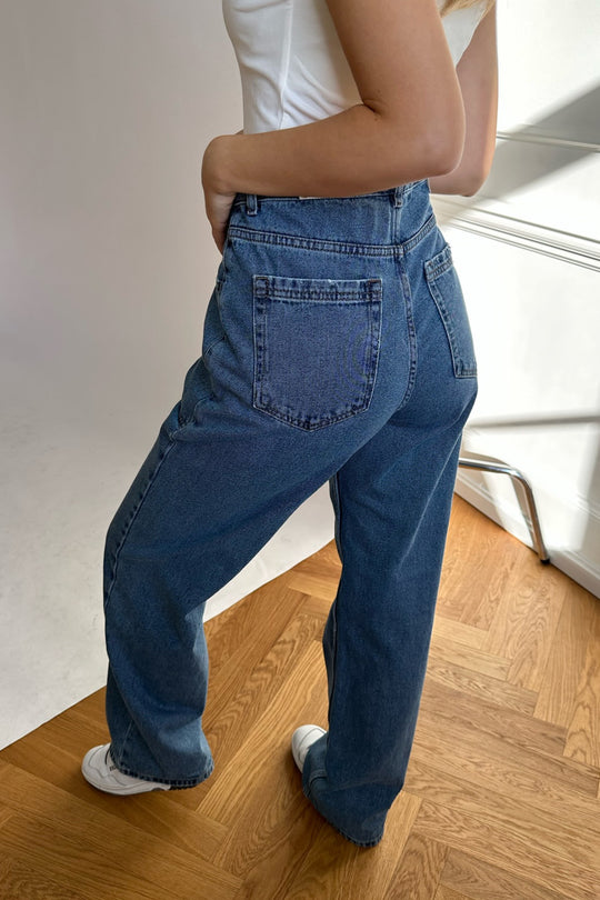 Højtaljede jeans i blå denim med detaljerede lommer.