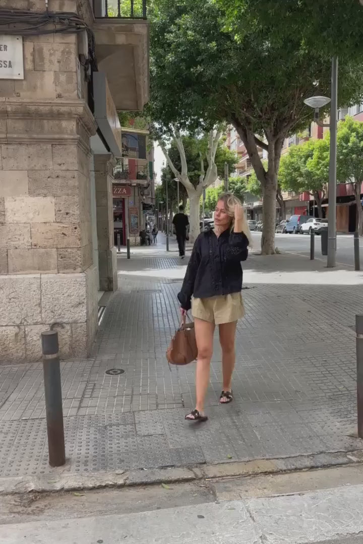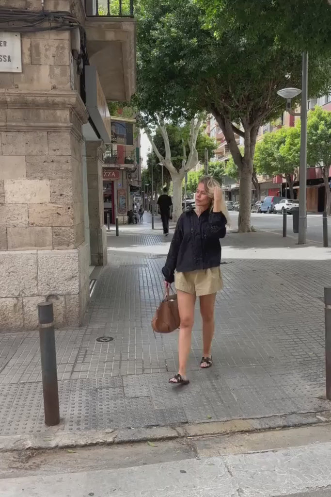 Sort skjorte med broderidetaljer, lange ærmer med volumen og knapper som lukning.