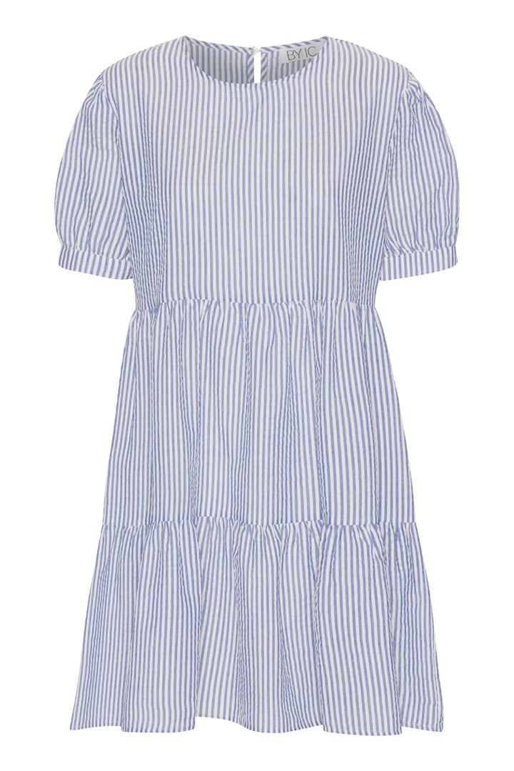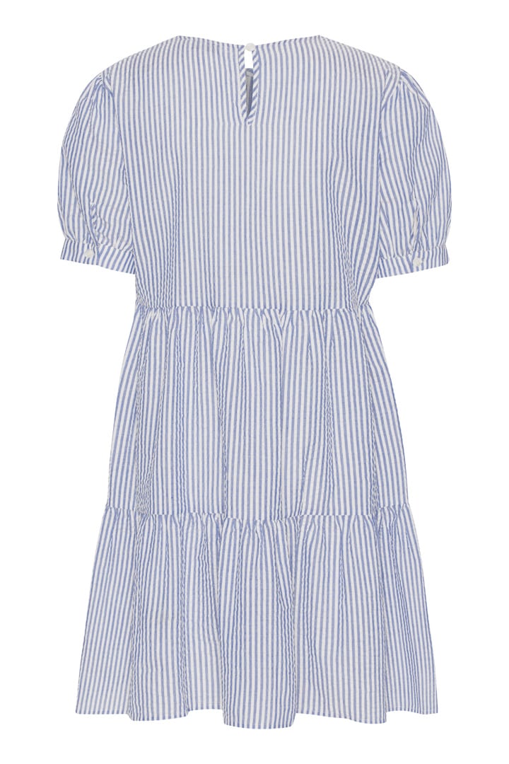 Smuk og simpel kort kjole med korte ærmer, rund hals og en lille fin knappe i nakken - Perfekt med en strik over.